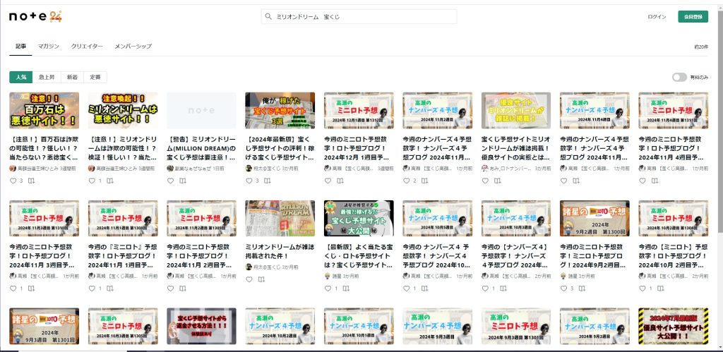 これらのサイトは、いずれも「高額当選者」の体験談を掲載し、いかにして予想サイトを利用して大金を手に入れたかを詳しく説明していました。